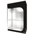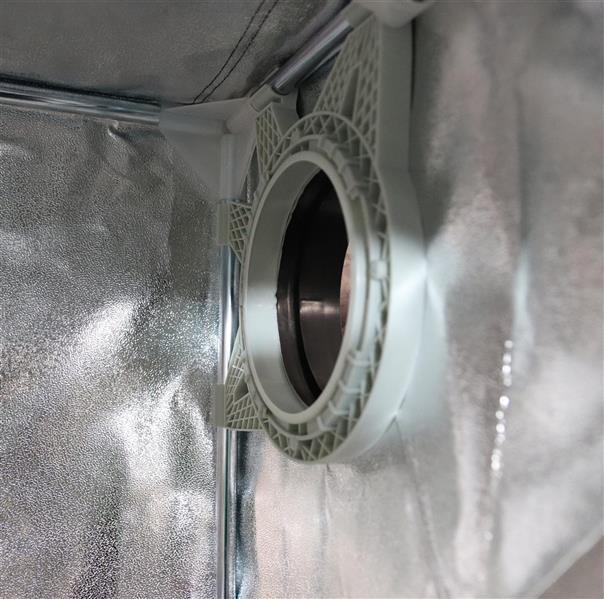 Es gibt erstmal keine Ein- und Auslässe. Es liegen zwei Ducting Flange bei, die jeweils in eine beliebige Ecke eingebaut werden können. Dabei handelt es sich um ein Innenteil, das an das Gestänge geclipst wird und ein Außenteil, das durch die Zeltwand mit dem Innenteil verschraubt wird. Nach der Montage wird mit einem beiliegenden Schneidewerkzeug ein Loch in das Zelt geschnitten. Ja, das Loch bleibt dann auch da! In den Zuluftflansch, der unten positioniert werden sollte kommt eine !Lichtfalle! geschoben, die mittels 160mm Flange fixiert wird. Der 160mm Flange fehlt dann leider beim Luftauslass, der oben positioniert werden sollte. Ein 125mm Phonic Trap Luftschlauch lässt sich ziemlich lichtdicht in die Öffnung quetschen, aber ein normaler Aluflexschlauch wirkt wie eine Bockwurst in der Turnhalle. Hier sind 1-2 zusätzliche Flange nötig um den Schlauch anschließen zu können. Die bekannten "Socken" zum Zuziehen sind nicht vorhanden! Für die Installation ist Werkzeug notwendig, das beigelegt ist.