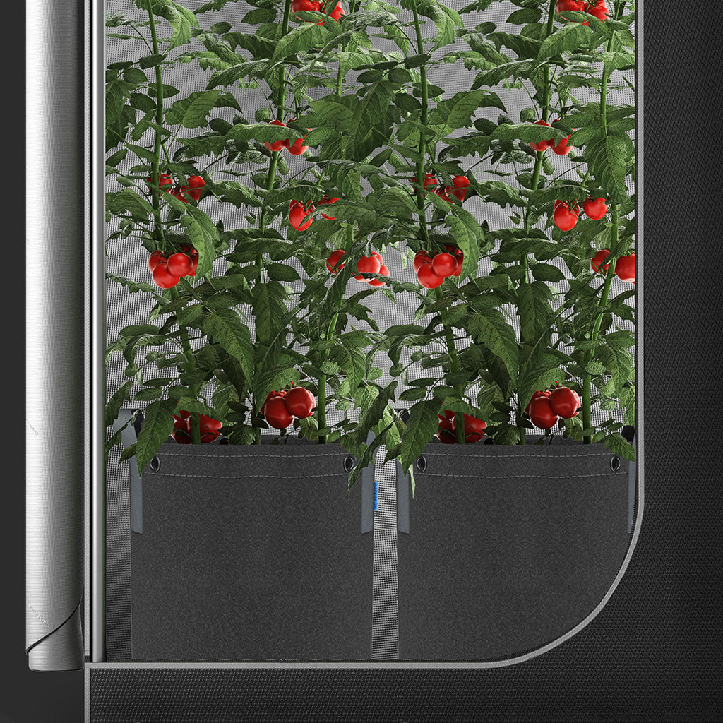 Wiederverwendbare Grow Bags, die das Pflanzenwachstum durch Air Pruning („Luft-Wurzelschnitt“)verbessern und überschüssiges Wasser ableiten.