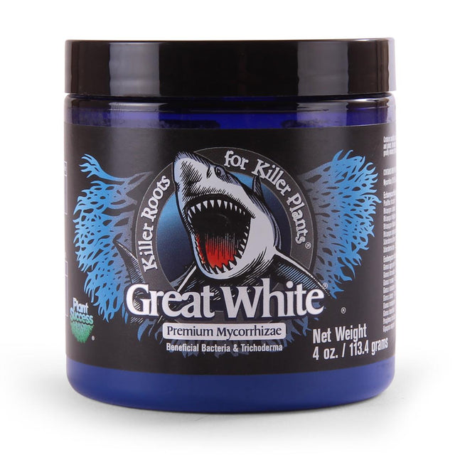 Great White ist eine der modernsten Mykorrhiza-Formeln auf dem Markt. Diese hochkonzentrierte und vielfältige Mischung aus nützlichen Mikroben unterstützt das Wurzelsystem deiner Pflanzen und fördert so eine bessere Wasserspeicherung und Nährstoffaufnahme.