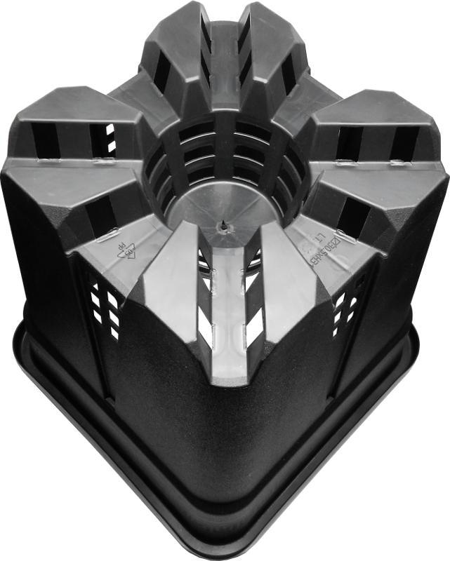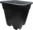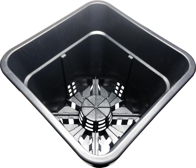 Viereckiger Pflanzentopf aus schwarzem Kunststoff mit Lüftungsschlitzen